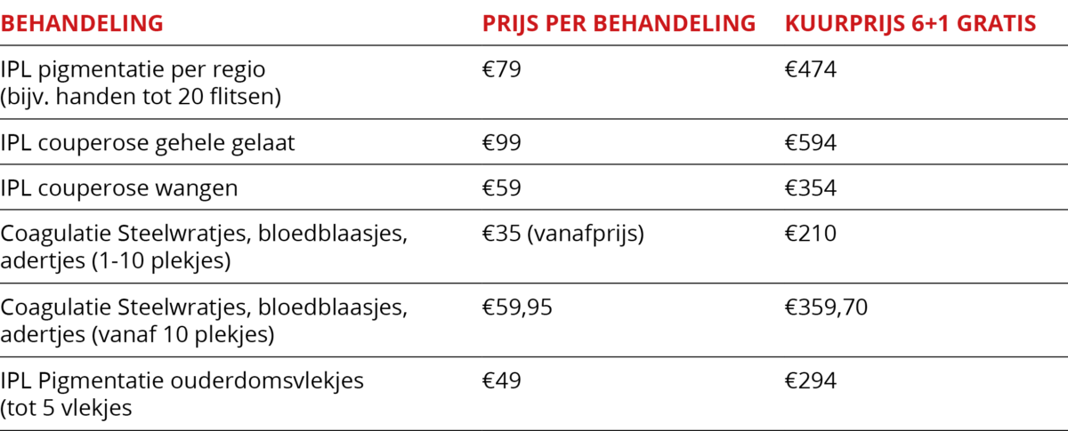 Bekijk ook onze prijslijsten voor meer behandelingen.